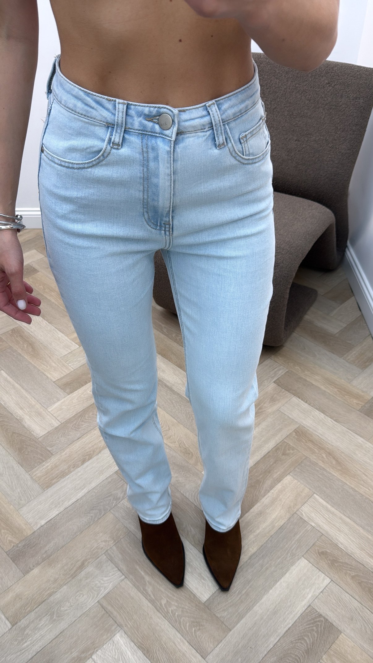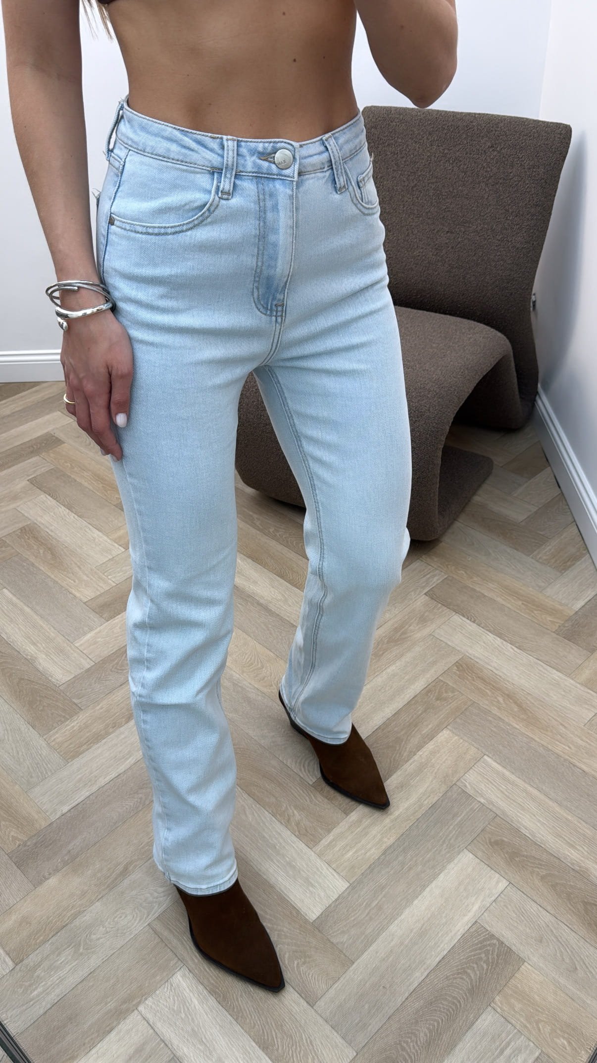 Tiesūs džinsai su elastanu.