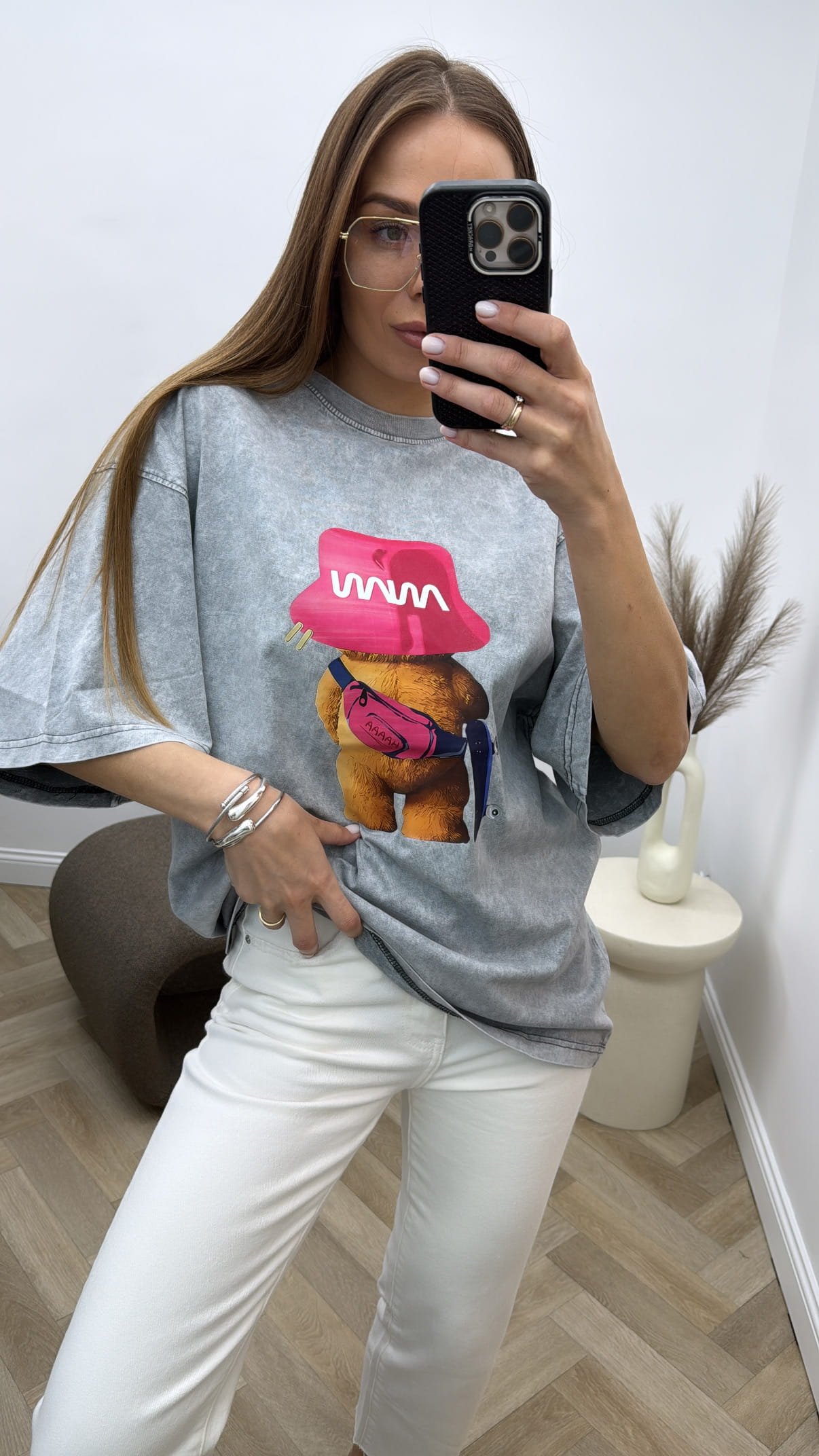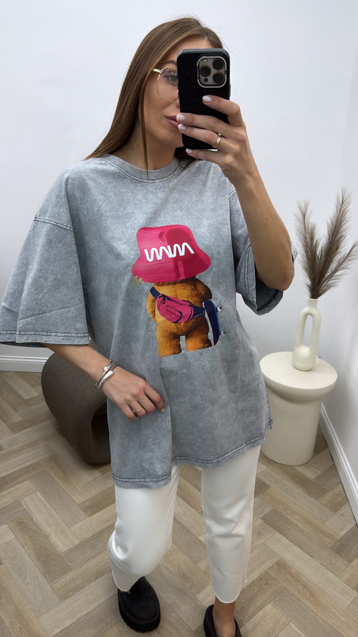 Modelio ūgis 170cm, dėvi universalų dydį.