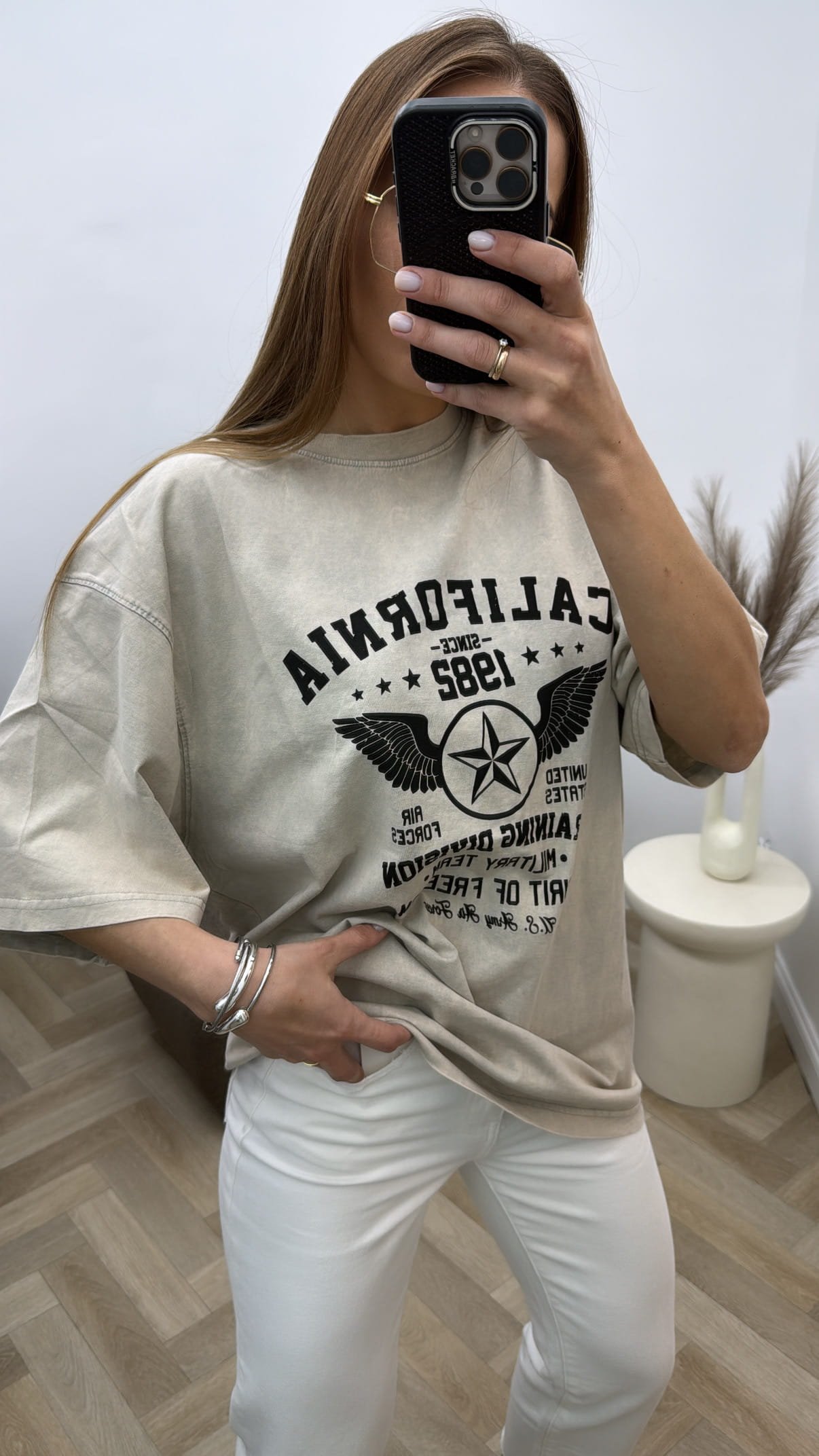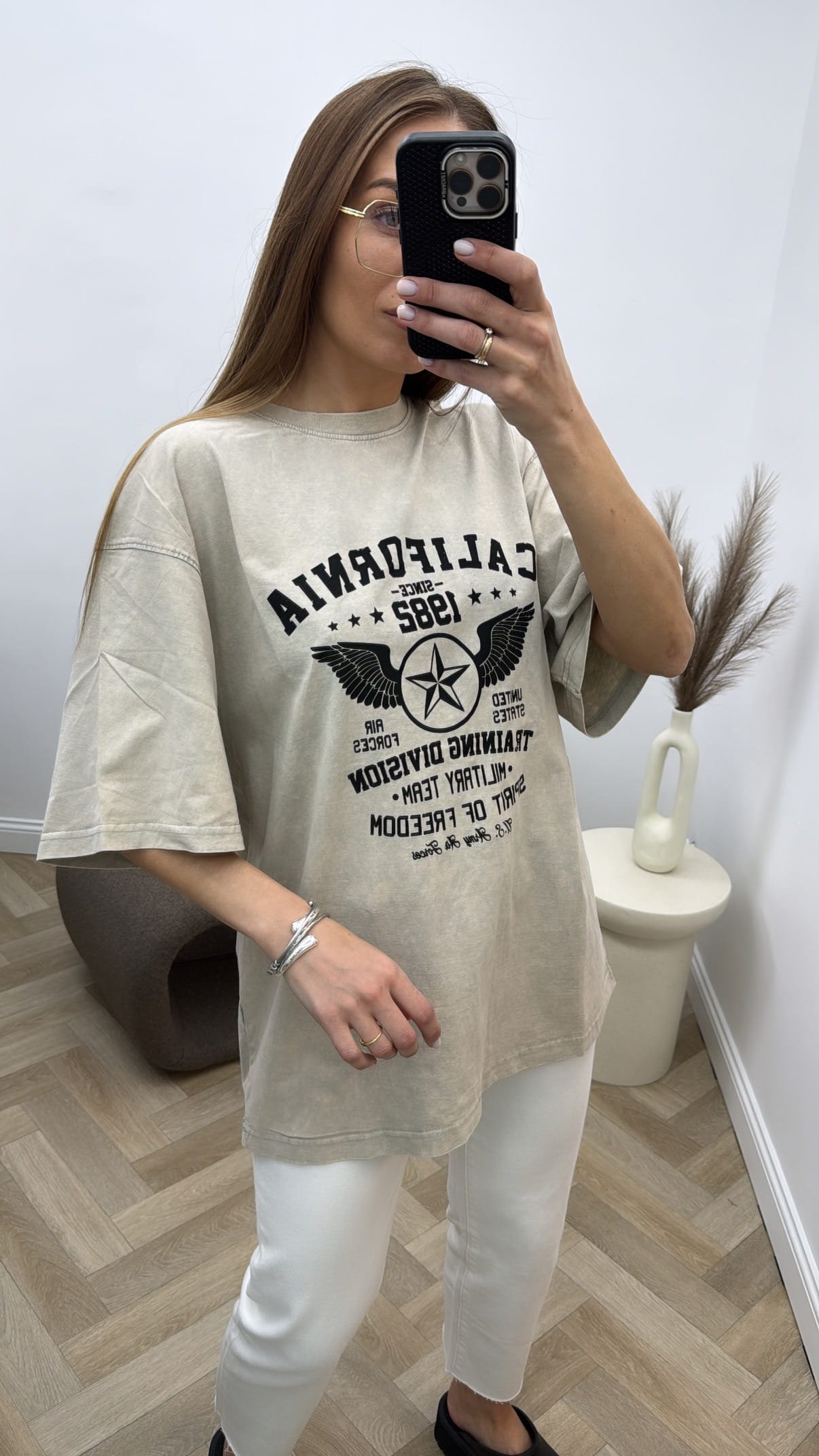 Modelio ūgis 170cm, dėvi universalų dydį.