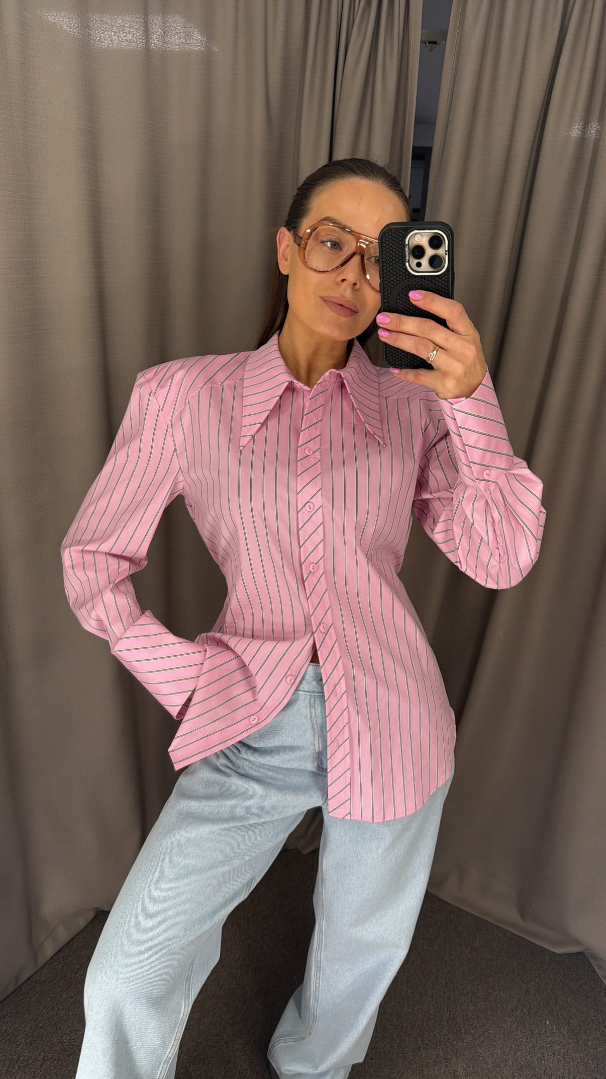 Ilginto modelio medvilnės marškiniai su petukais.