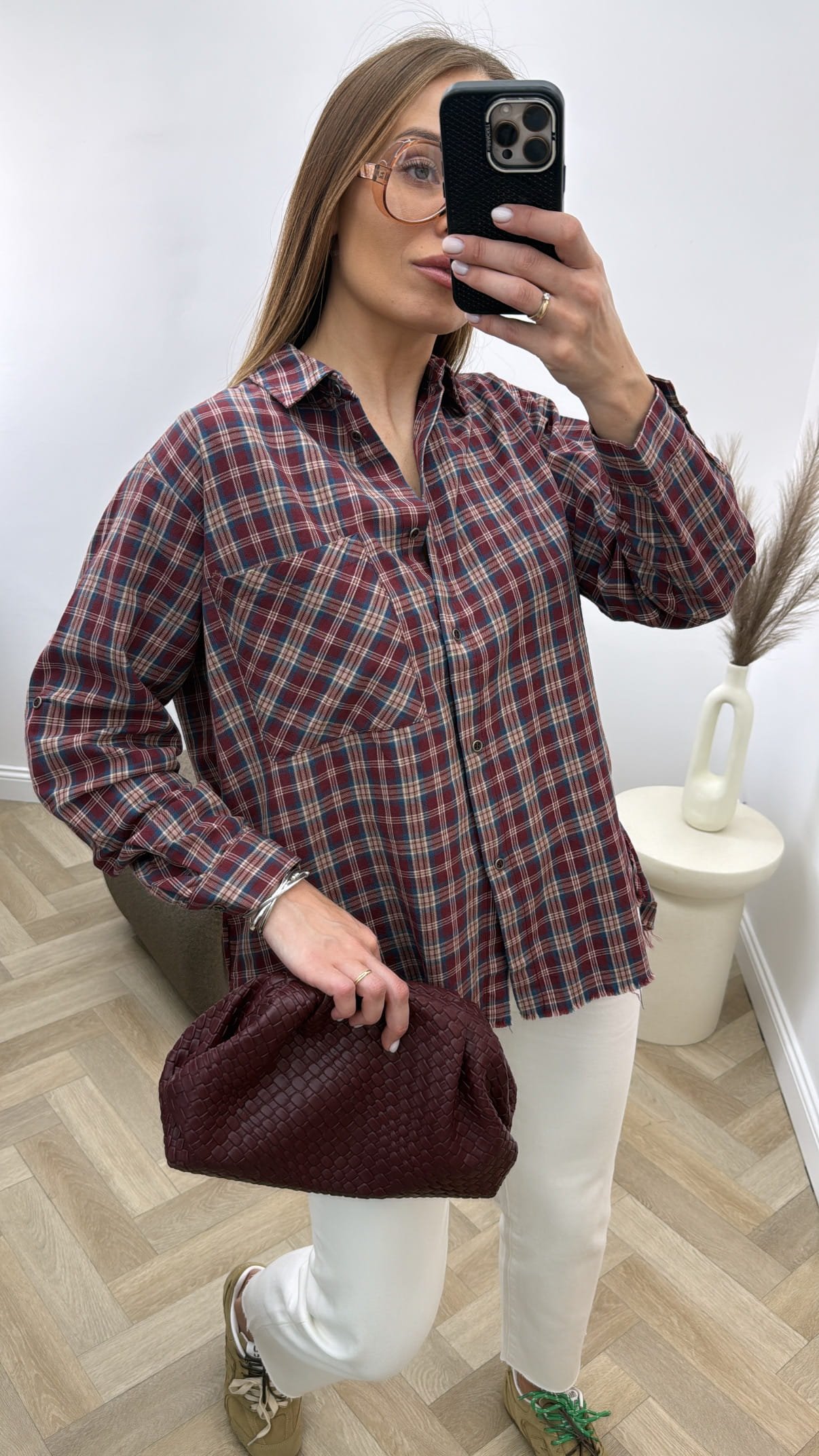 Languoti medvilniniai marškiniai, oversize modelis.