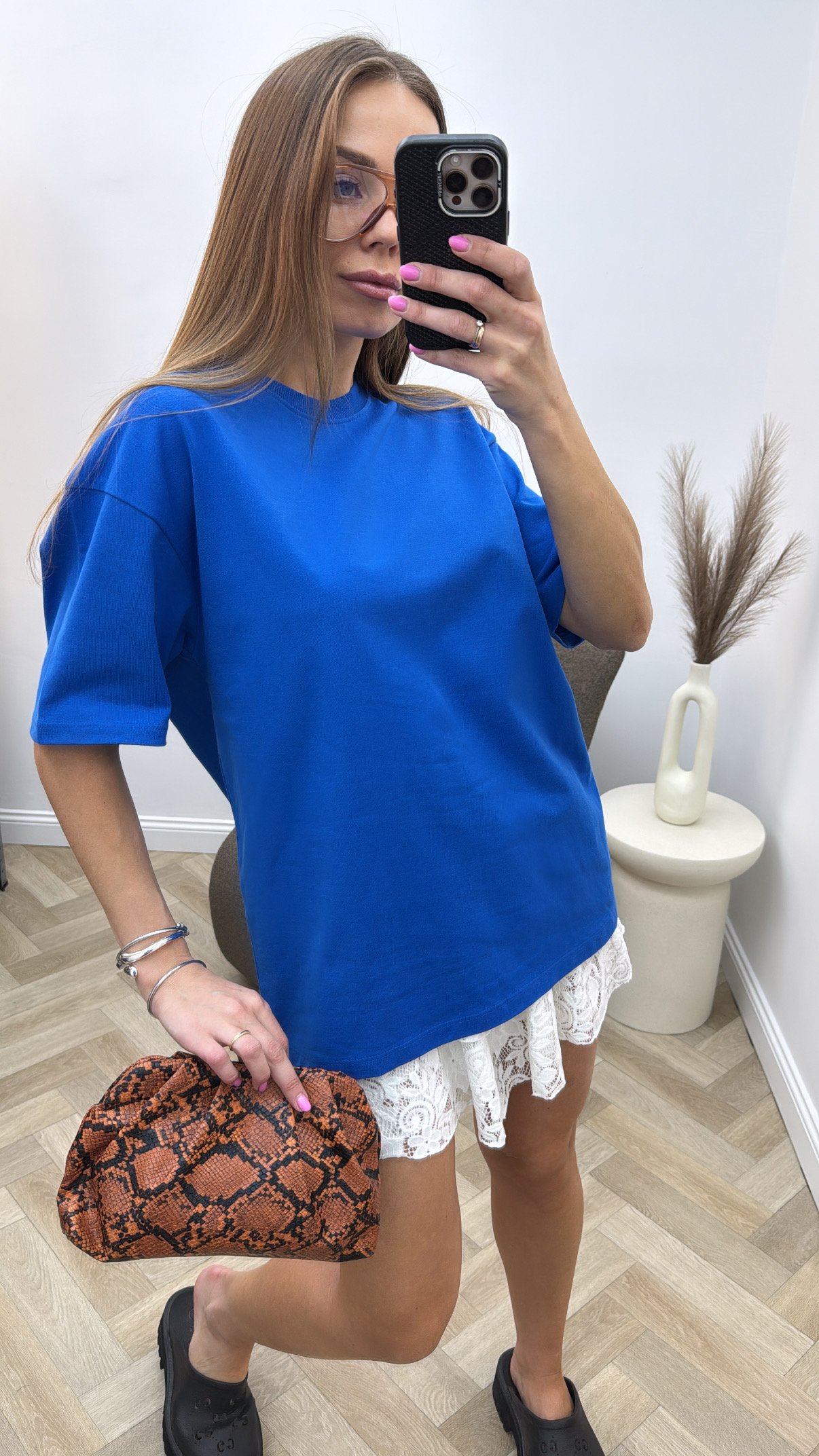 Oversize modelio mėlyni marškinėliai: