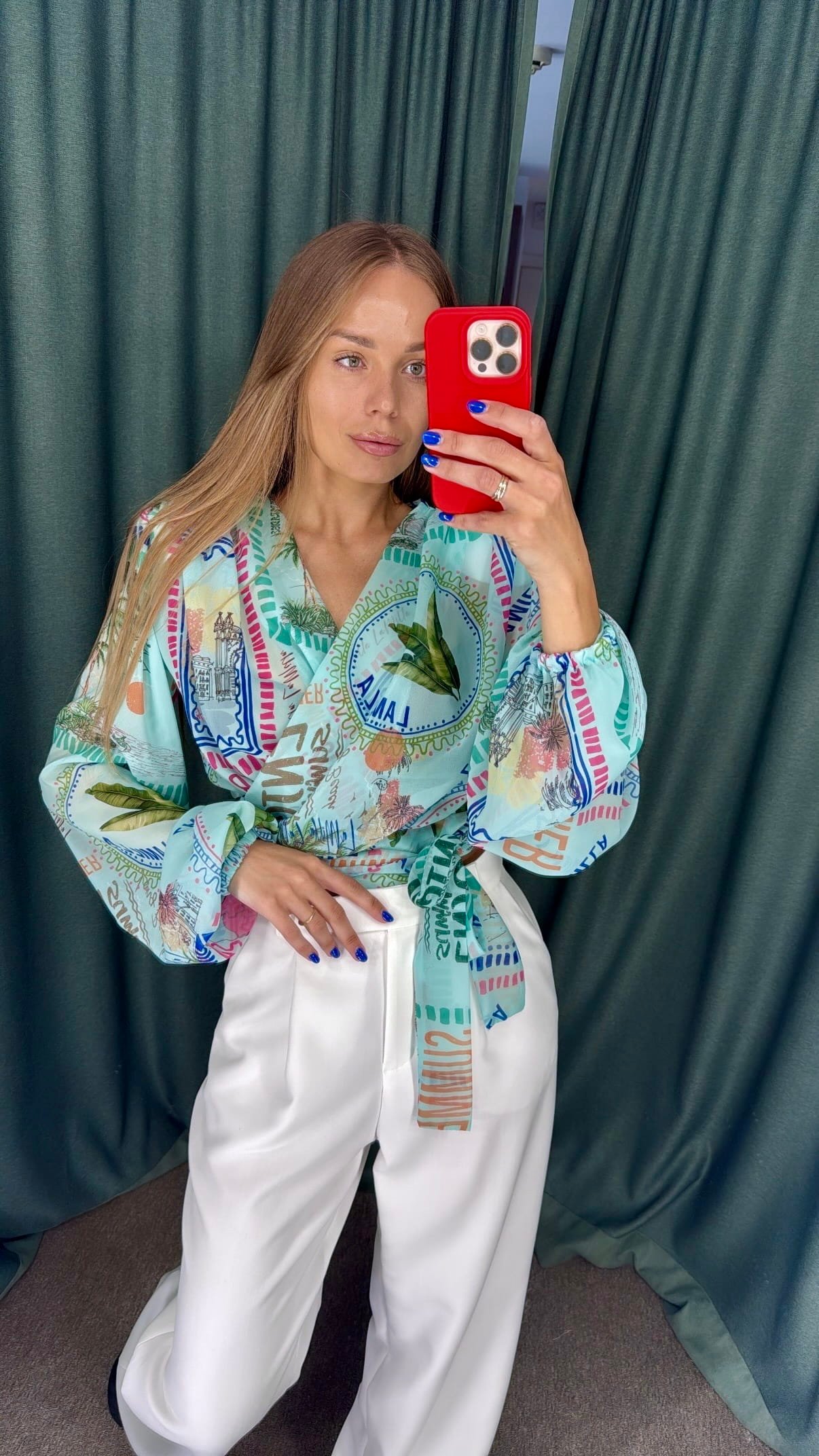 Marga palaidinė su rišamu diržu – lengva, išskirtinio rašto.