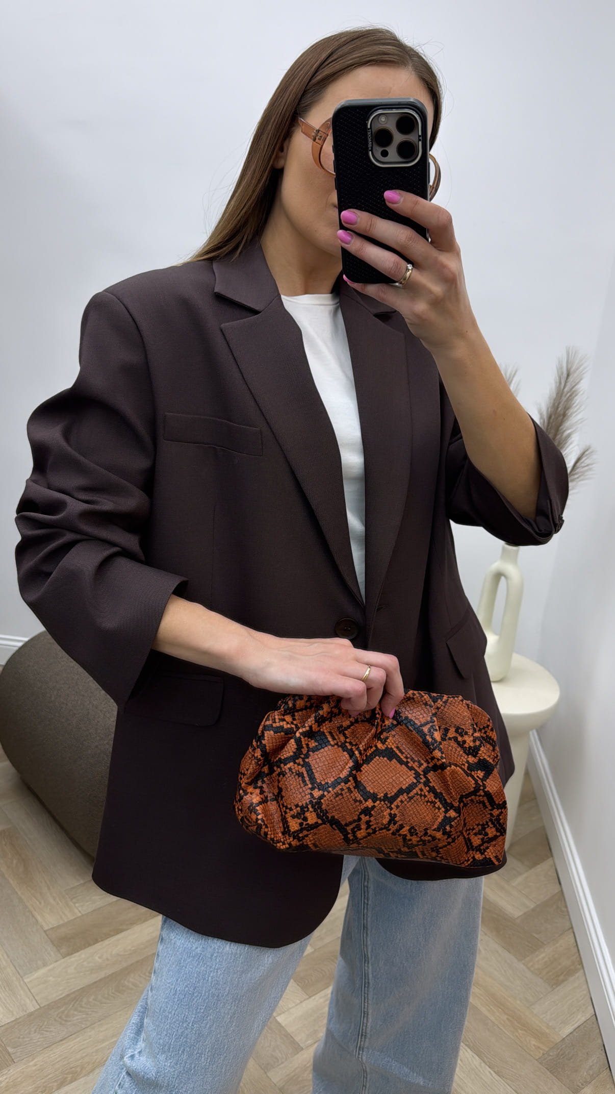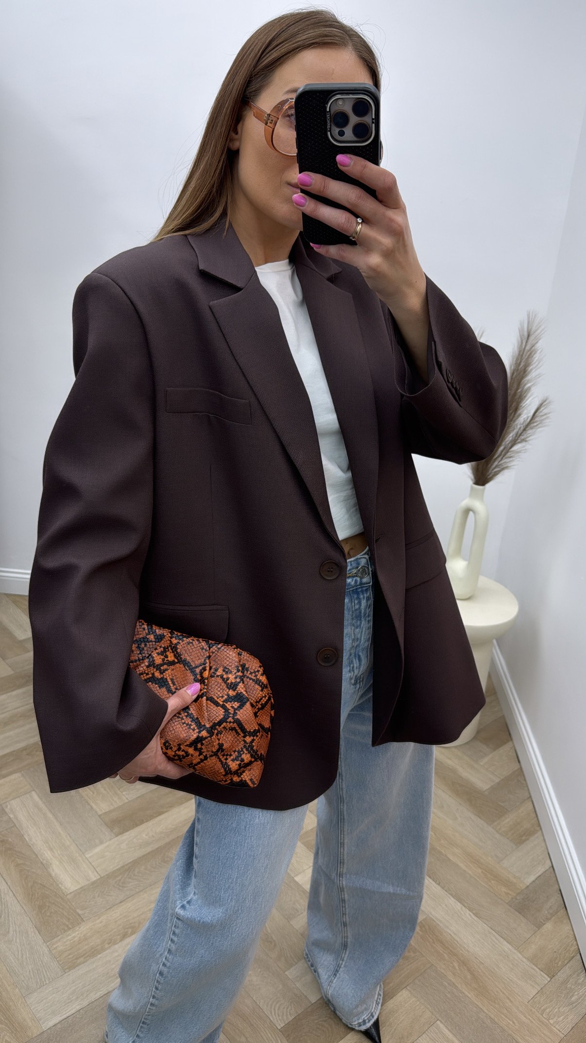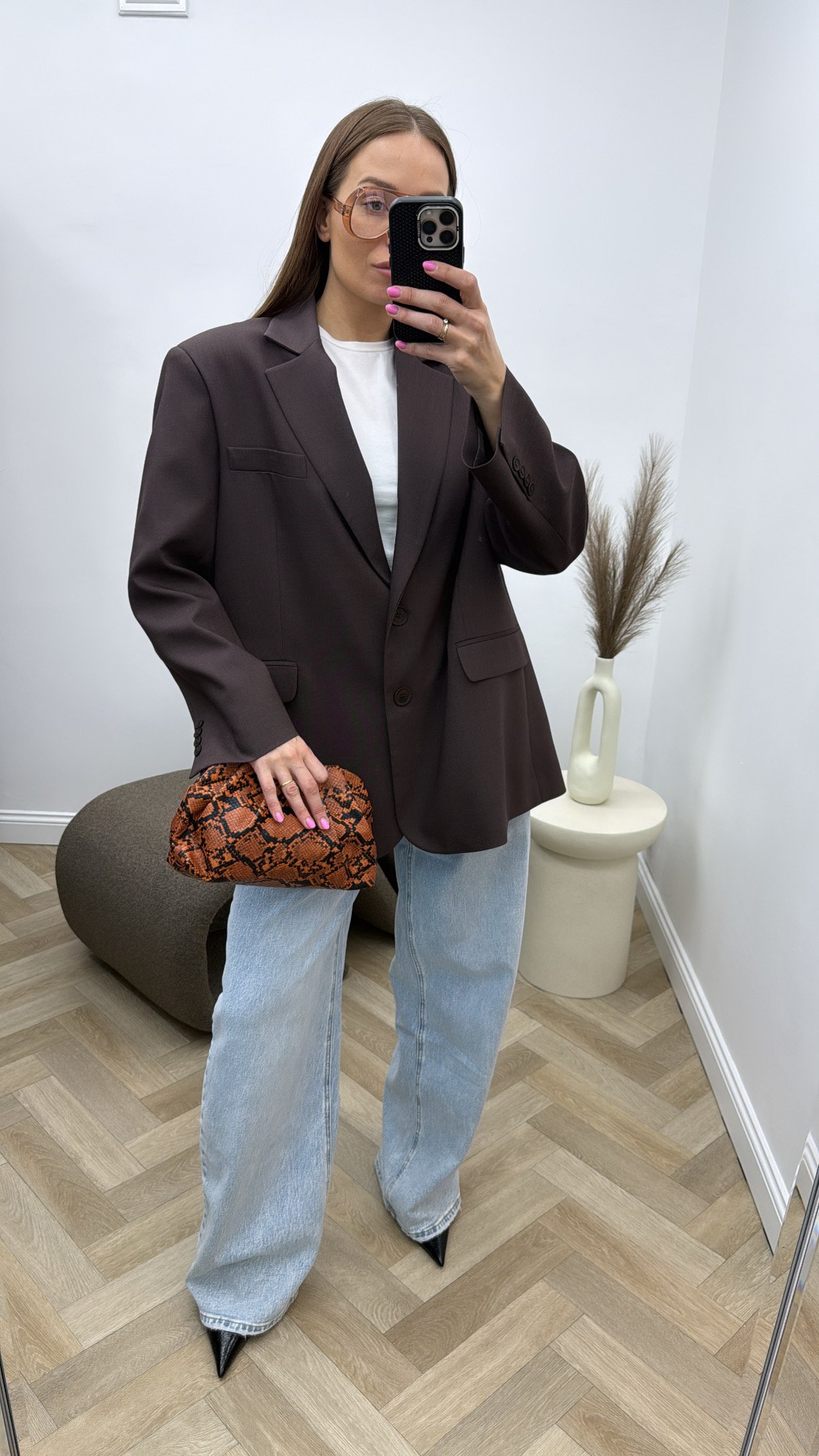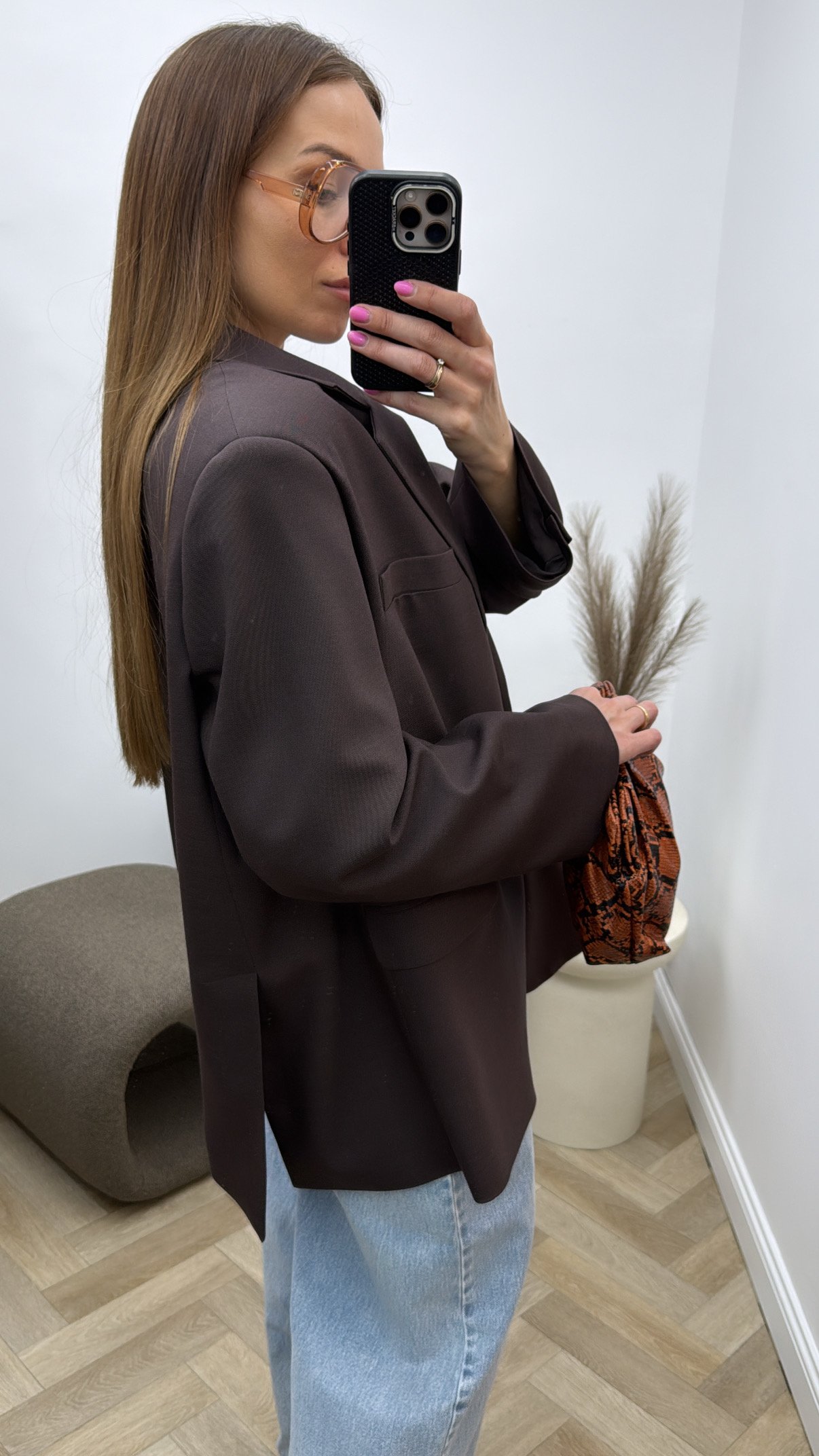 Rudas klasikinis švarkas.