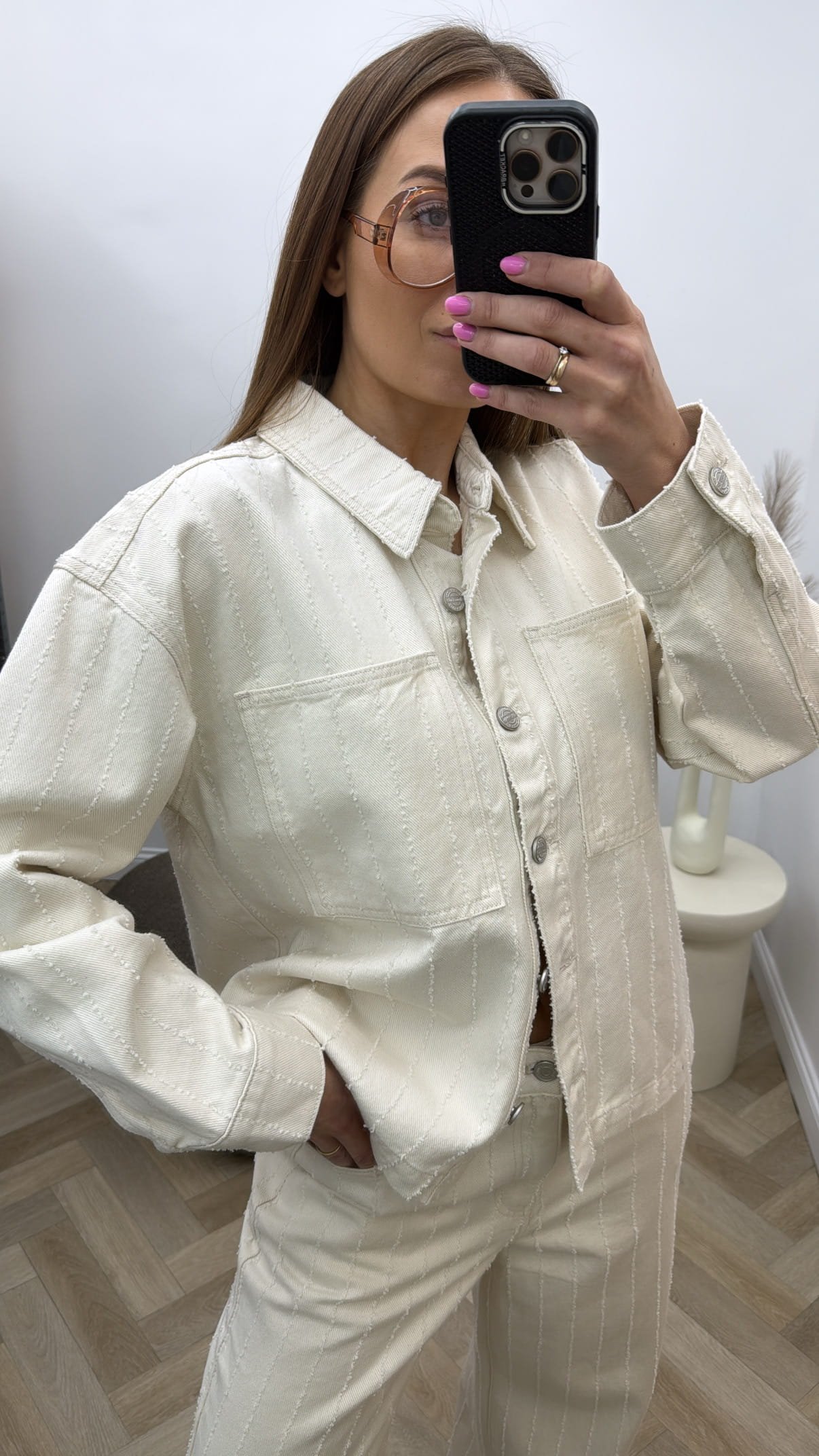 Šviesus oversize modelio denim švarkas.